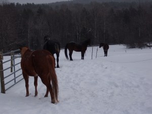 Beaugart does not like being kept in a stall. I like that about a horse and I understand it. I knew I needed to get him outside and soon. Being winter, I have limited options…its hard to move fences in January, lol! So my only option is to integrate him into the herd relatively quickly.
