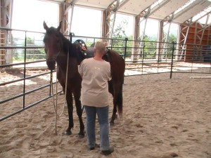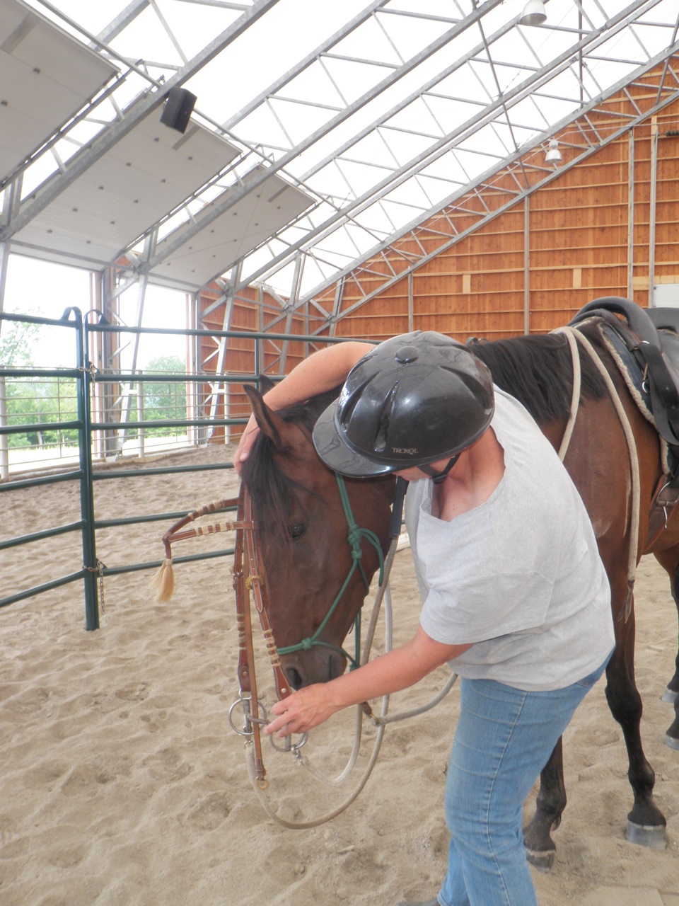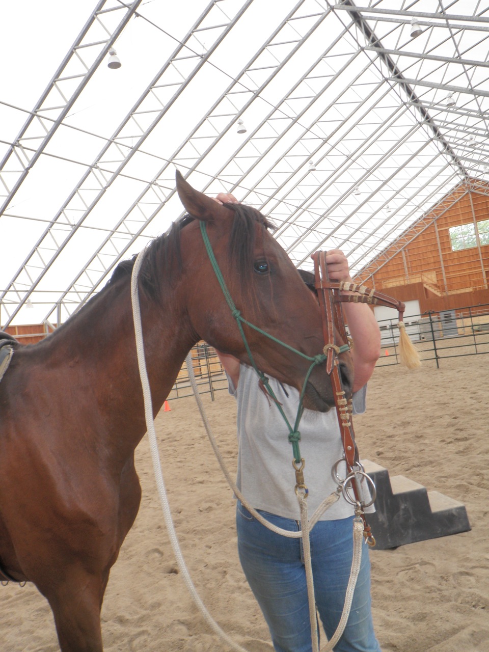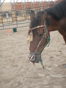 Next we tackled the bridling issue.  It was a big deal to him.  But with some persistance and patience, along with good timing with the release, we got the job done.  I had a goal of getting the bridle on 3 times (once I had done it once) with each try more successful.  Mission accomplished, but we still have some work to do in this area…