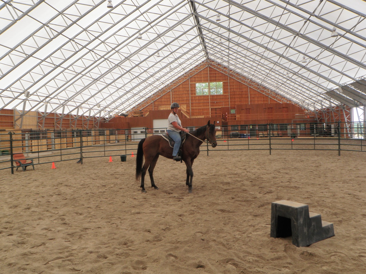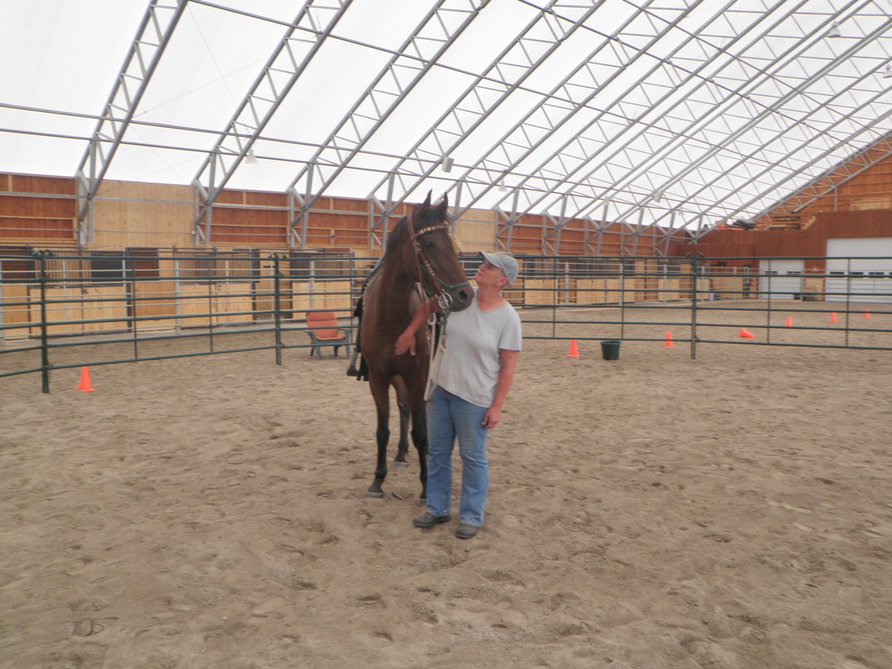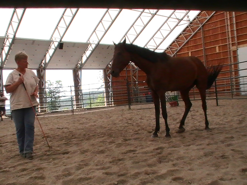 Anyway, by happenstance, I was invited to visit my friend Brenda Ladd at her farm and encouraged to bring Beaugart up for some training.  Brenda is in Bridgewater, NH and has a gorgeous facility with a large indoor arena and round pens.  She hosts many clinics each year with fabulous clinicians (Dave Ellis, Karen Rolph, David Lichman to name a few) and does some horsemanship coaching in between.  Brenda and I have been online  friends through Parelli Natural Horsemanship for several years so I was delighted when she and her husband Jonathan moved their venue to NH!  She is a wonderful coach with good instincts about what is working and how to build on what the horse offers.