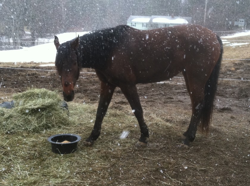 Most of our horses are somewhere in between. Just like humans, these energy centers are sometimes open, sometimes closed. The energy flow changes, weakening or strengthening, affected by injury, nutrition, environment and socialization, herd dynamics and past history. The powerful lesson I’ve learned from the horses is that if you provide what they need nutritionally, mentally, socially, physically, you can open these chakras. Actually the horse opens them, we simply provide the raw materials. When they are open, the horse has the amazing ability to heal itself….just like it was magic. For years I focused on the physical ailments and injuries of my horses. Manny, who has been with me for a dozen years has had all sorts of afflictions over the years, arthritic hocks, S-I joint instability, uveitis, and sarcoids. I used every medical trick in the book for him. I was sometimes successful and sometimes not…mostly not. My horses have always had the ‘best of care’, but something happened when we moved to NH, they moved home with me and I began to give them the environment and social life that was natural to them. At the time, I had not tuned into the chakra phenomenon, but I watched Manny change over that first year here. He became sound, engaged, comfortable in his own skin. His uveitis cleared, in fact a follow up Opthalmology consult had the doctor baffled…’this horse doesn’t have uveitis!?!’ His arthritis and back issues resolved and his sarcoids dissappeared (seriously), without any intervention from me outside good nutrition, lots of room to move and engage with a herd and horsemanship that protected his dignity and natural power.